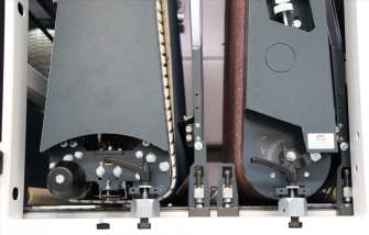 Esta máquina de lixar madeira vem equipada com unidade de aplainamento com lâmina rotativa de 380, medidor eletrónico de 50 sectores, unidade de estruturação de saída de alta potência de 11KW (15hp); grupo de super acabamento, unidade transversal compacta, inversores eletrónicos para motores de correia abrasiva, motores independentes com potência máx. de 30Kw (40hp), entre outras características.